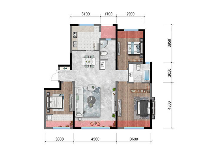 餐客一体空间布局, 悦享家庭欢聚时光;