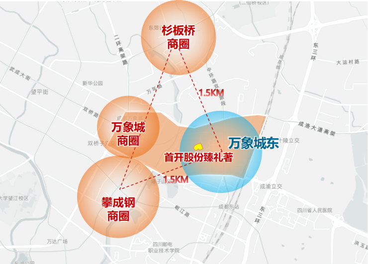 顶级商业:万象城/环贸ICD/滨江天街;在建综合体:成华和悦广场/东方希望上东里;社区商业:鲁能城秀街/润街等