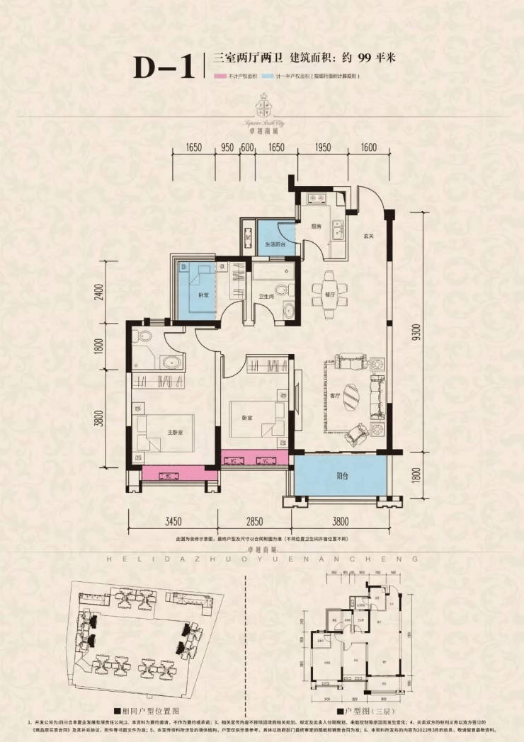 高层 建面约89-115㎡ 三房两厅双卫