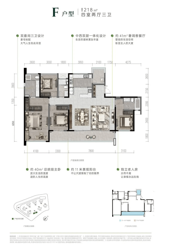 项目产品线覆盖建面约108㎡至218㎡的全系精装户型,涵盖三至五居,通过不同的梯户配置与空间设计,精准匹配从品质刚需到终极改善的多元家庭结构。