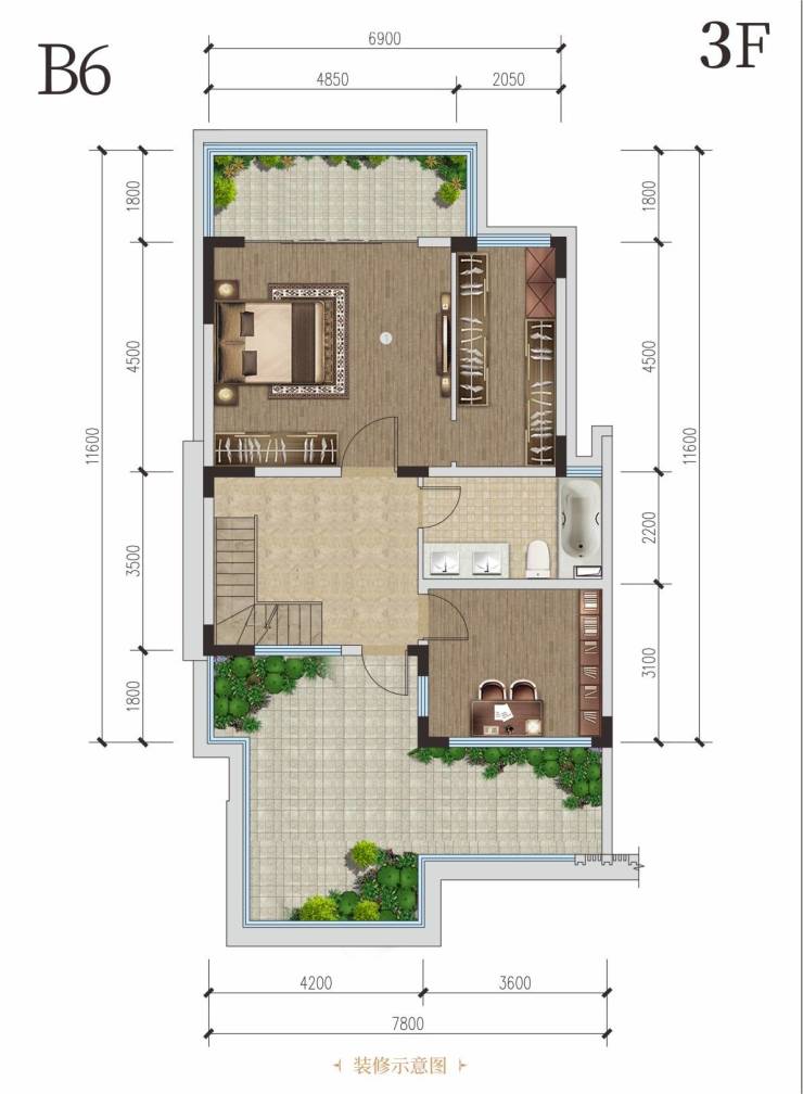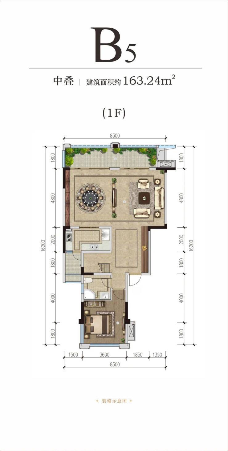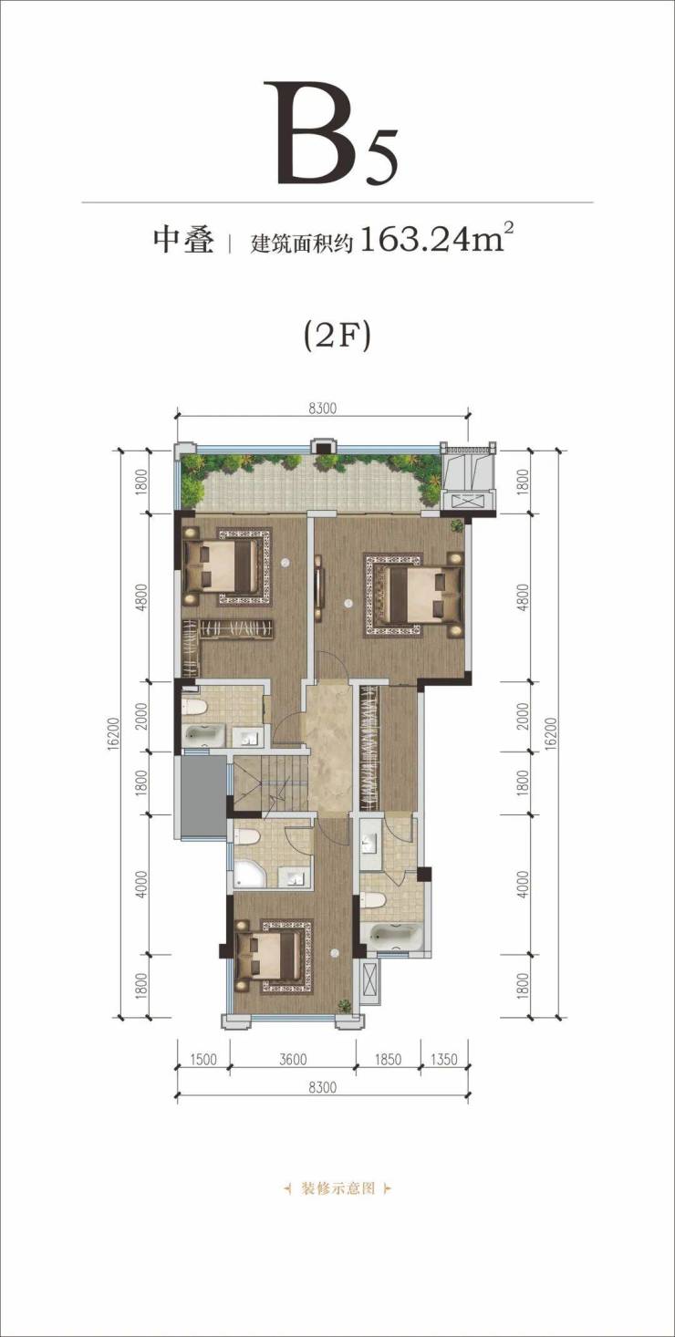 在售主力户型:建面约160㎡实景叠墅(附赠面积达300㎡)