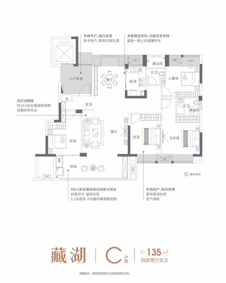 理由七:至多97%使用率专梯专户私享前室,高得房率,多出两间房的居住空间感受,至多22平方