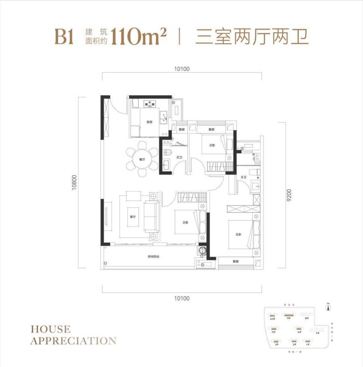 建筑面积约110㎡ 三室两厅两卫 中心城珍稀入场券