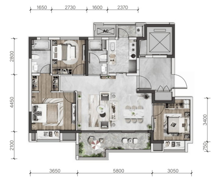 建面约126㎡ 舒适全能四居室