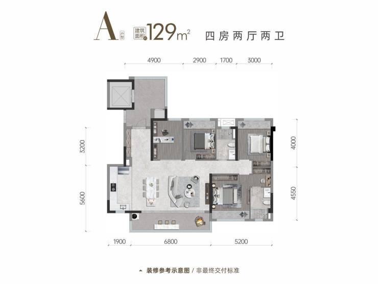 产品面积:精装四房129-212㎡