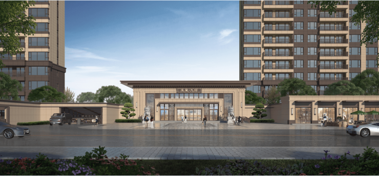 采用新亚洲建筑风格,线条明朗,沉稳挺拔,尽显大宅风范。社区入口引入公馆大堂概念,满满归家仪式感,彰显高端形象。