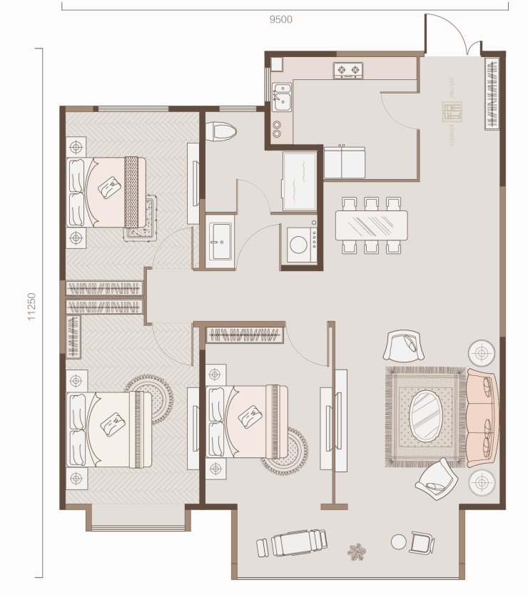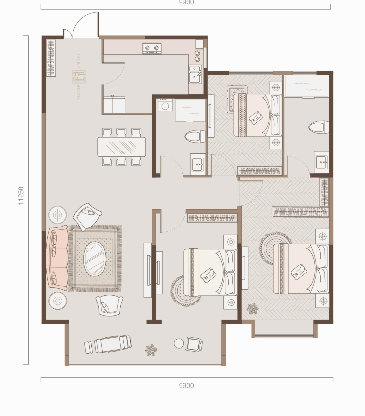 锦里▪观锦建筑面积:约131㎡—134㎡户 型:三室二厅一厨二卫