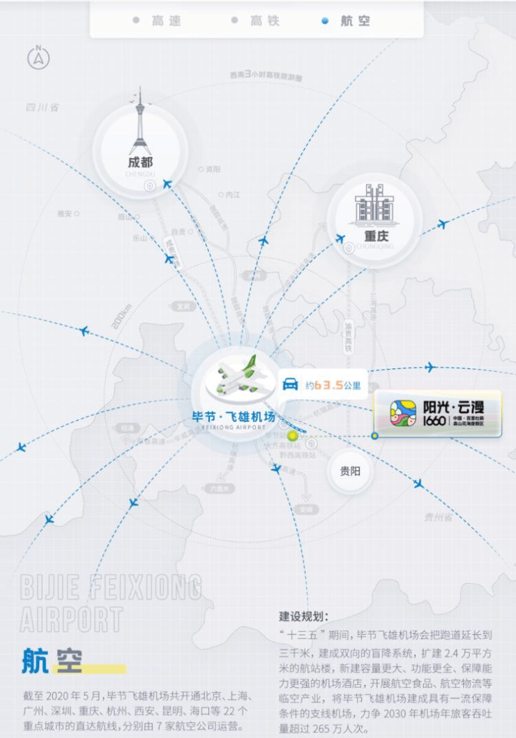 百里杜鹃距离贵阳龙洞堡机场150公里、毕节飞雄机场40公里、遵义新舟机场100公里,三大机场均全程高速直达;贵广高铁、沪昆高铁有效辐射,贵黔高速、黔息高速无缝衔接,杭瑞高速、黔大高速穿境而过。有酒店、乡村民宿500余家,可同时接待2.8万人就餐、1.2万人住宿。