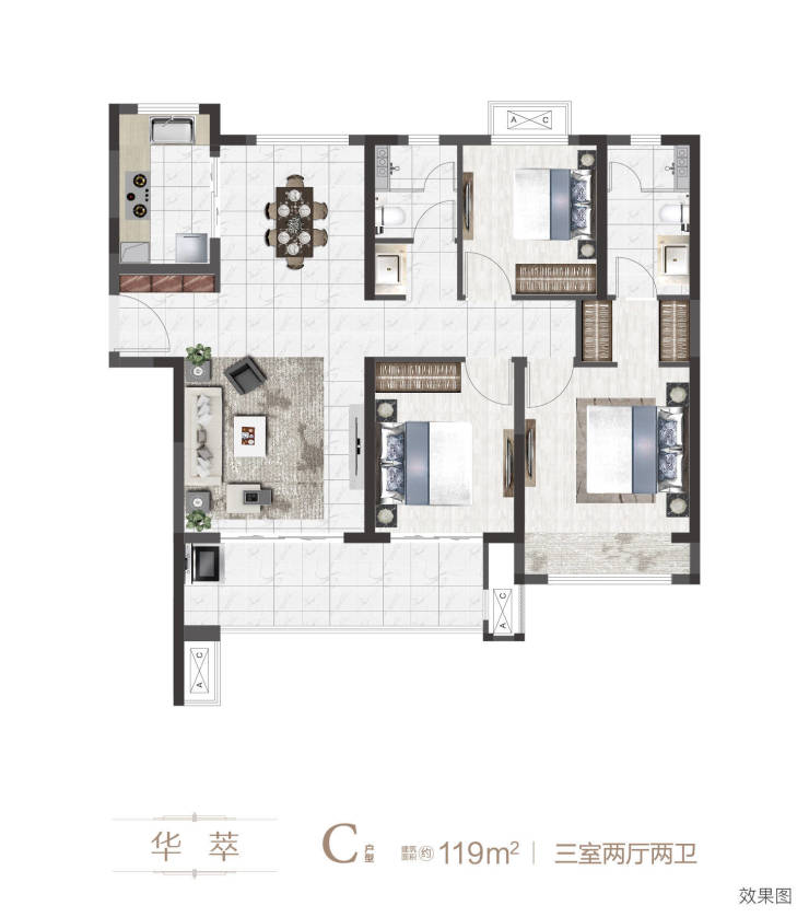 【119㎡三室两厅两卫】