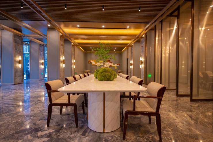 超配归家礼序——酒店式双层挑空智慧入户大堂,打造零接触归家系统及母婴室、会客休息区等空间,让业主从容安全归家。