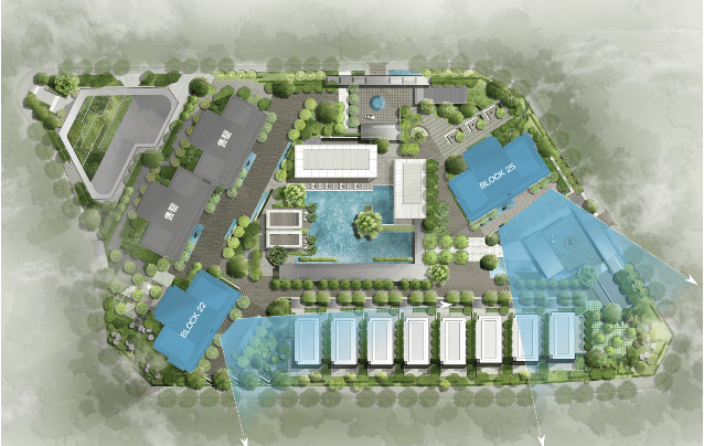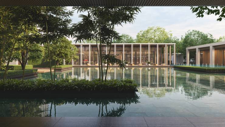全球华人设计教父梁志天以水为主题的会所群落,以1500㎡中心水景贯穿庭院,蜿蜒串起三幢会所建筑,打造出繁华都市中极为稀缺的心灵栖息地与隐世桃源,满足业主餐饮社交、阅读时光、运动健康、疗愈放松、艺趣娱乐等多场景需求。