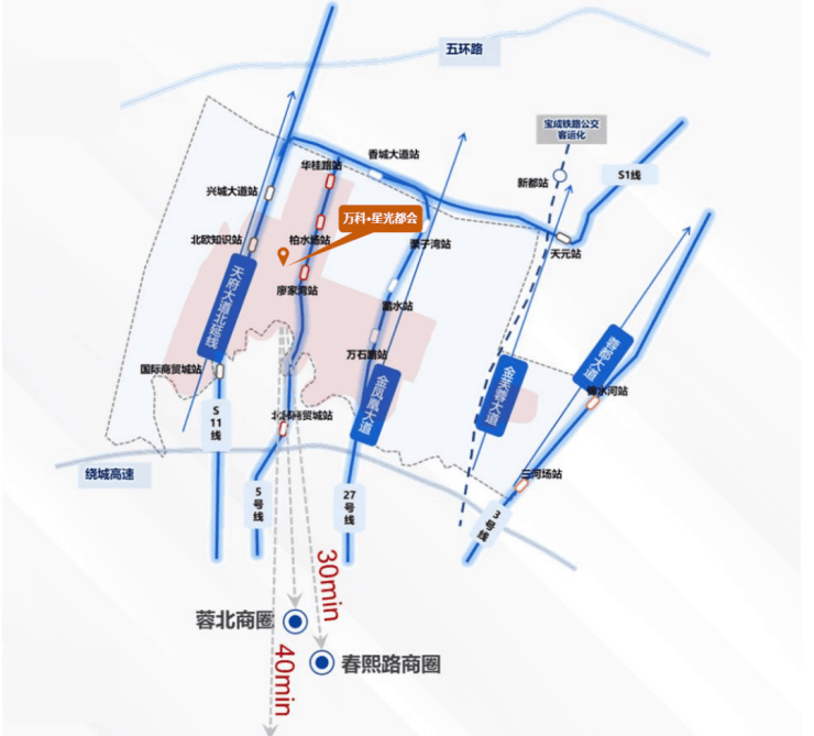 市域铁路S11线:直线距离斑竹园站约1km,于2023年动工,建成后接驳成德立体交通体系