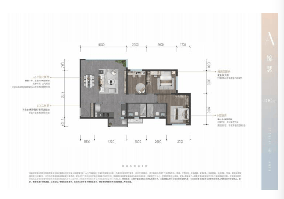 建面约100㎡三房两卫 (A户型)