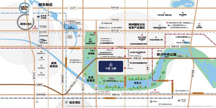 一、健康标准健康土地基因:绿博园旁、千年贾鲁河与东侧郑汴湿地公园两条河流环绕,健康生态的环境。