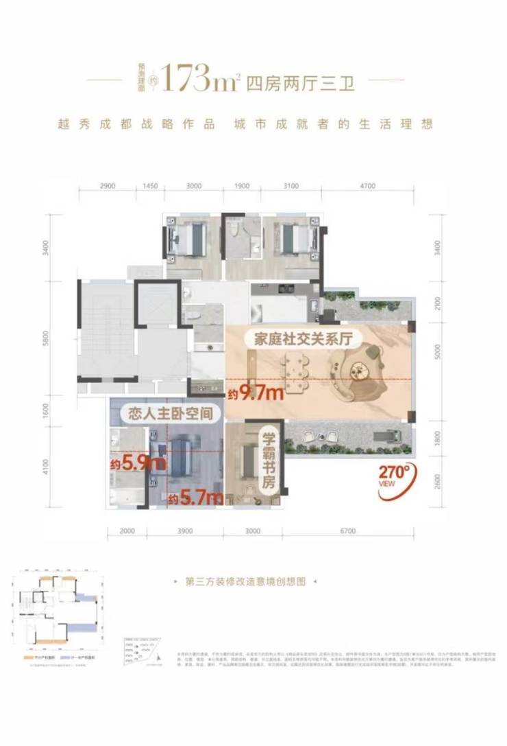 #领先的户型:户内空间的场景可以营造更和谐的家庭关系。①【贵族家庭社交空间】——家庭成员的互动和亲密交流②【恋人主卧】——男女主人亲密关系的互动和享受③【学霸书房】——尊重孩子的学习和生活体验