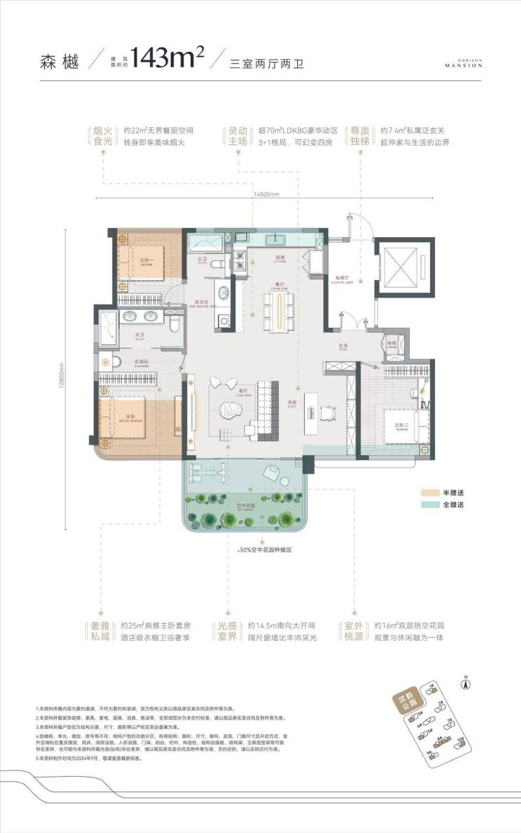 建面约143-191㎡墅质大平层
