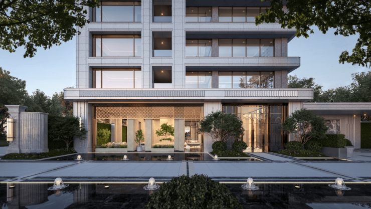项目全奢级石材干挂,于水岸再次美学激荡,塑造建筑雕塑质感与稳固挺拔的形象,对话城市理想与高度
