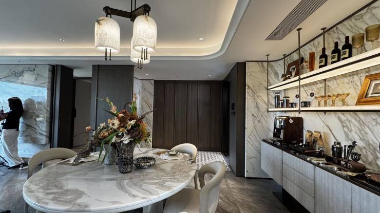 约5.9米尺度客厅赋予空间更多可变性,30平方米主卧套房配备五件套卫浴系统,独立浴缸配置彰显品质追求。同面积段产品中罕见的空间规划,展现超前设计理念。项目推出的180平方米户型更是板块内稀缺的7层亲水奢宅,通过三阳台体系实现多重生活场景切换,将"无界临河"的居住意境融入生活日常。