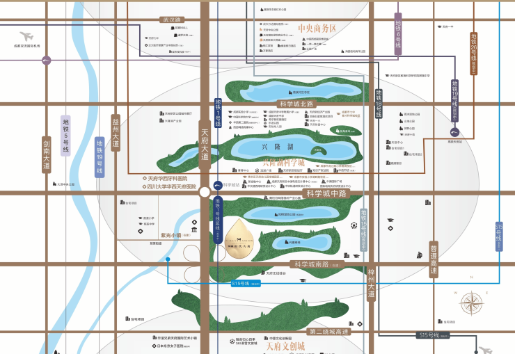 坐落天府新区核心板块——科学城兴隆湖片区,坐享国家级新区发展红利。项目周边四大生态公园环抱,形成约11000亩城市绿肺: