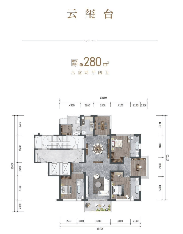 作为社区的旗舰户型,约280㎡的空间实现了居住尺度的再次飞跃,可轻松布局为六房。其空间更为奢侈,动线规划更具巧思,为主人提供了包括社交会客、家庭起居、私密休憩在内的全功能生活场景,总价约