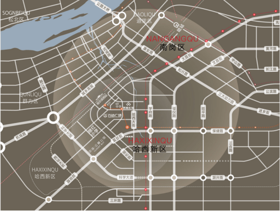 中海|云麓公馆位于哈西南兴街与复旦街围合区域,连通哈西大街、哈尔滨大街等交通主动脉,紧邻地铁3号线,交通便利。距离万达、红场、金爵万象等商圈约1.5公里,一揽城市最优质的交通、商业、教育、医疗等生活配套。15分钟黄金生活圈内,生活需求一站式满足。
