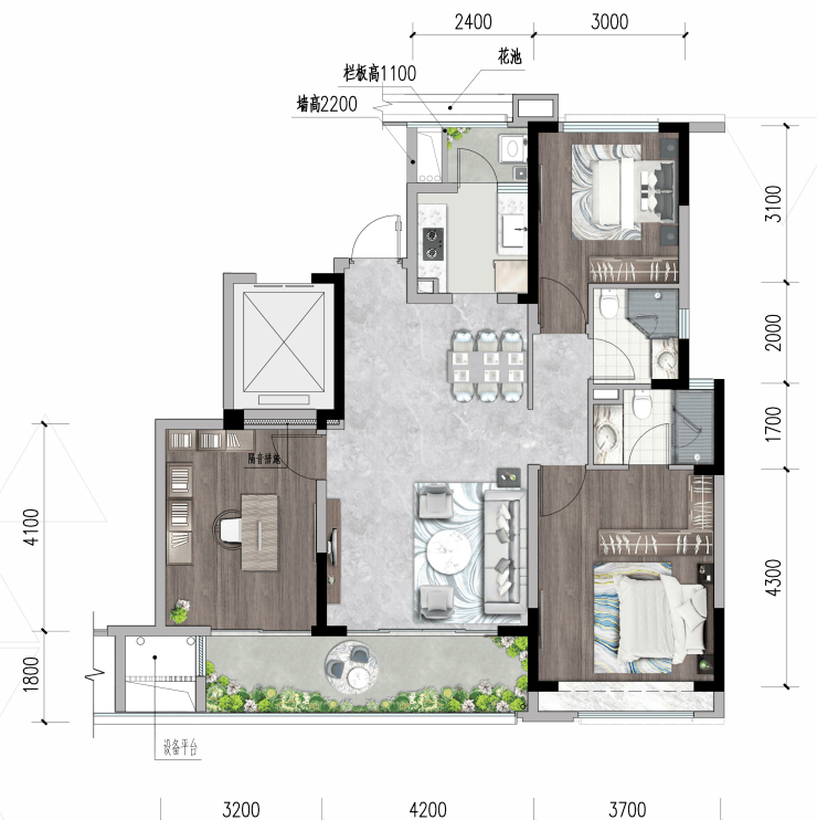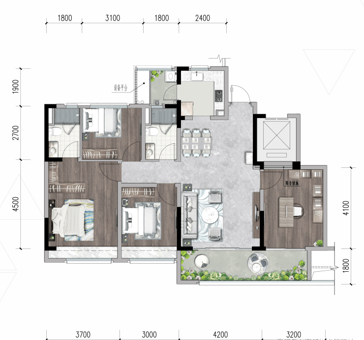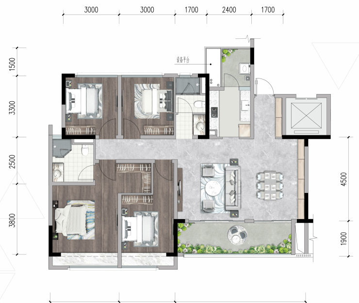 联通式阔尺7m阳台,迎接更多清风阳光·主卧套房设计·户型方正,利用率高