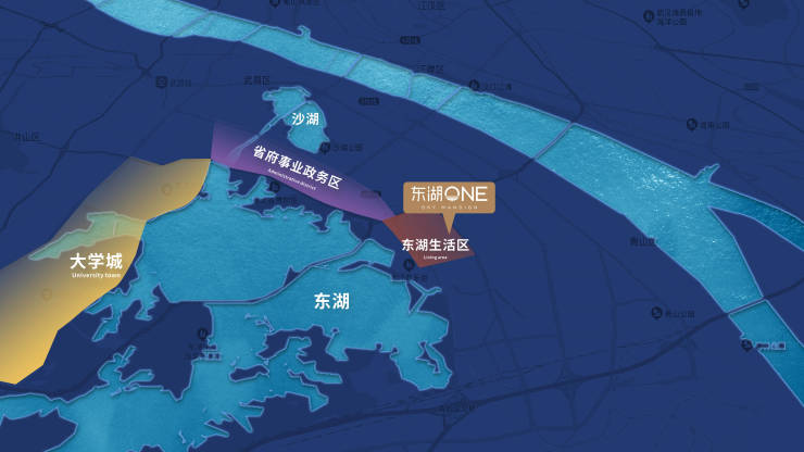[东湖生活区]:东湖ONE占据武昌二环之上,紧邻省府政务区,扼守城市交通、发展主动脉,拥享大武昌产业及金融发展红利;南抵世界东湖,是集自然资源+重大枢纽+金融商务于一体的城市复合功能区。