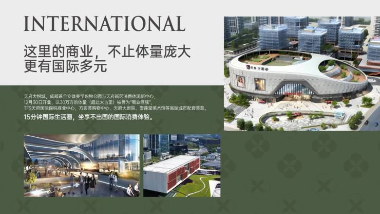 国际CBD生活,十分精彩生活圈。疏密有致的天际线之下,成都新中心,高能级+大量级,总部聚集,巨匠荟萃,展现城市至高标准,“世界级”实力已然显露。即享公园城市塔尖级配套,10分钟黄金生活圈,高能级城市资源聚集,天府CBD成熟兑现期,正是上车时