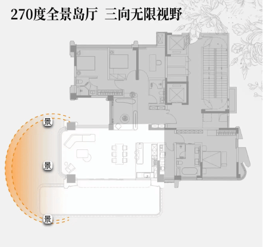 主力户型解析:全景式家庭空间,奢享双主人套房与悬浮岛厅
