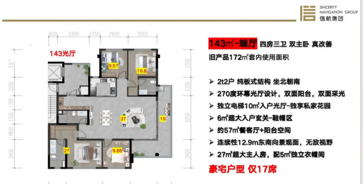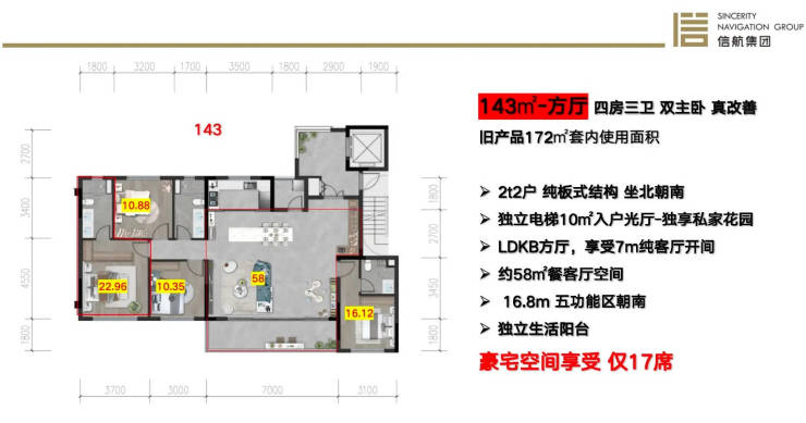 143㎡四居:城北独家LDKB方厅设计,153㎡实得面积含79㎡餐客厅(阳台联通后)