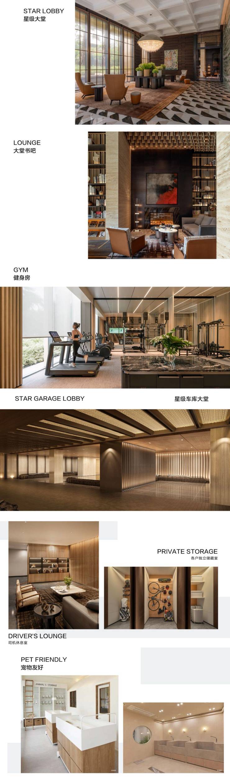 每一栋一层设置专属泛会所,由LACADIERE御用设计大师陈建中先生设计,PLD担纲灯光顾问。大堂挑高空间以现代奢华的风格配置酒店式星级配套,延伸家的第二会客厅。同时配置星级车库大堂、各户独立储藏室、司机休息室、访客车位及宠物友好设施。