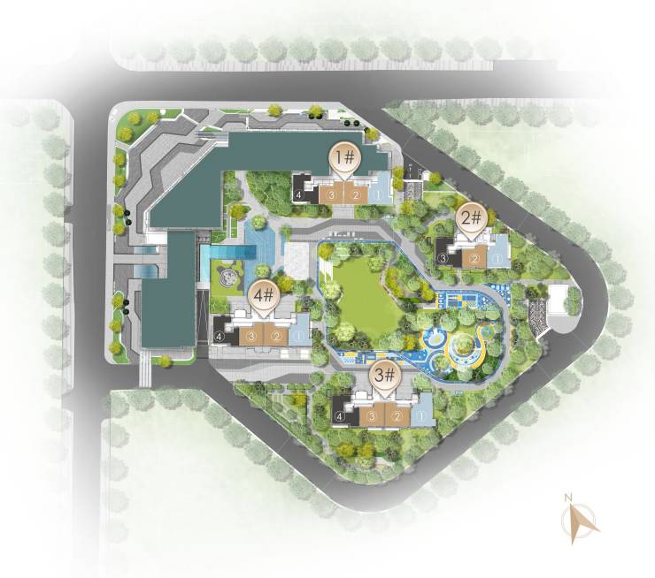 项目绿化率超30%,以围合式中庭景观园林,在稀缺的二环打造了约2万方的景观面积,同步以”觅见山水、悦享未来”为理念,融“山、水、林、光”等元素于景观设计中,将园林景观与归家仪制融合;配置有约250米健身步道,约460㎡童梦天地及羽毛球场。