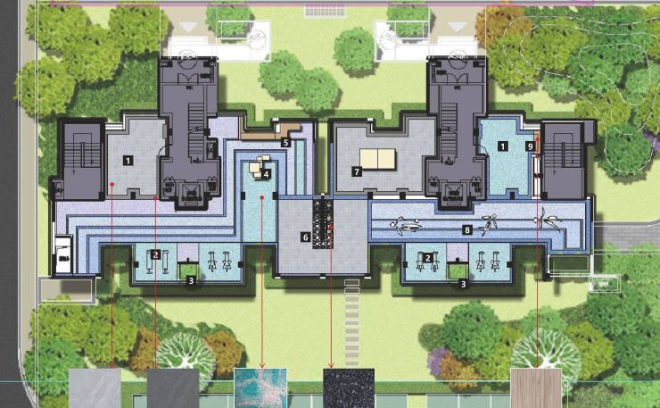 人文社区:礼仪入口、人际交往、趣味互动、私享交流、滨水休闲五大功能区间