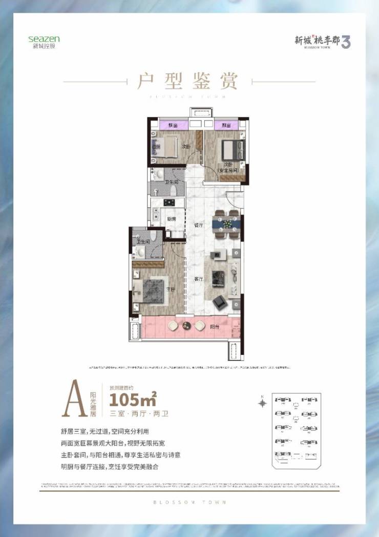 在售户型: 95㎡(三房两卫)、105㎡(三房两卫)、132㎡(四房两卫)