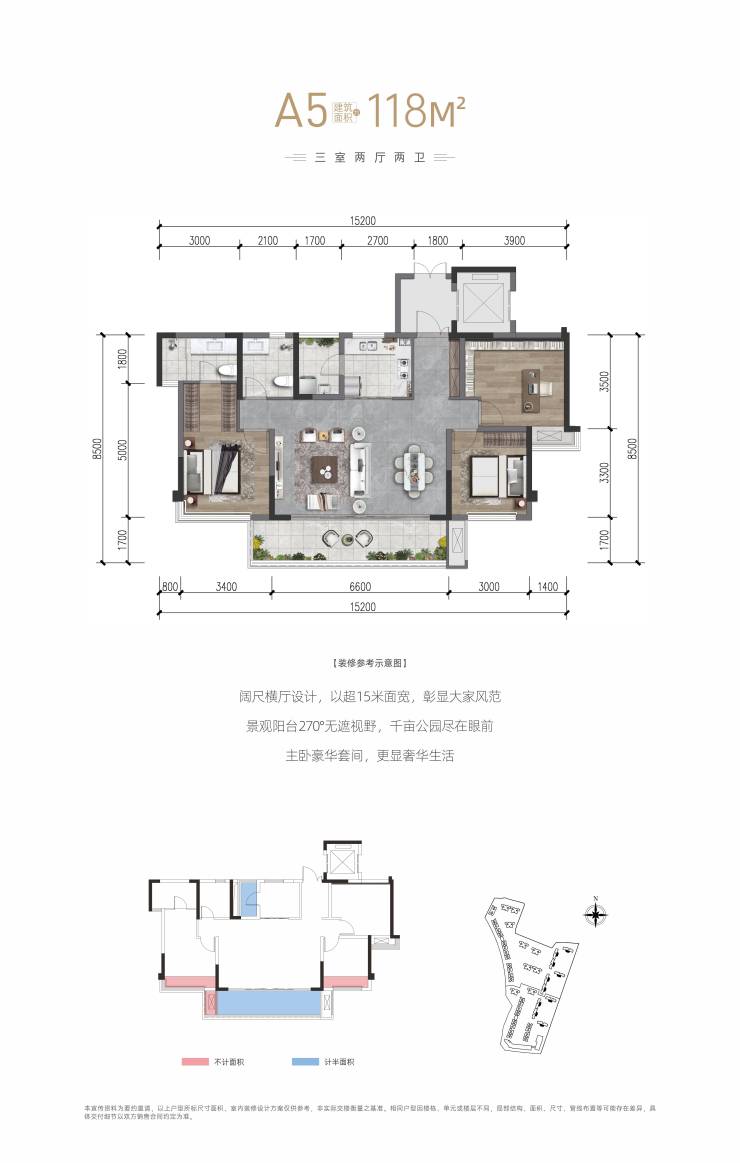 15/16栋17层 建面:118m²132m²(套三/套四双卫)