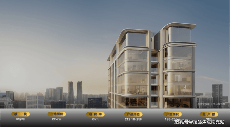建筑外立面采用国际化公建化设计,大面积落地玻璃与铝板完美结合,打造270度全景视野。与邻近的林家坝TOD地标建筑相映成趣,共同勾勒出城市天际线。