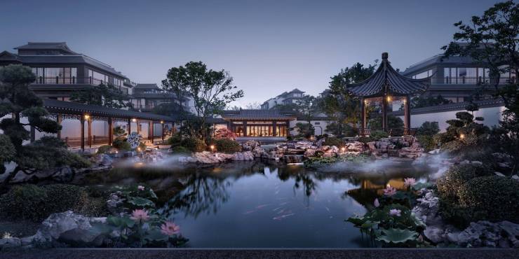 由荣获广厦奖、美国IDA大奖的杭州gad团队执笔,以现代工艺还原传统建筑精髓。飞檐斗拱、雕花门窗等细节处处彰显东方美学,营造"晴耕雨读"的理想生活场景。