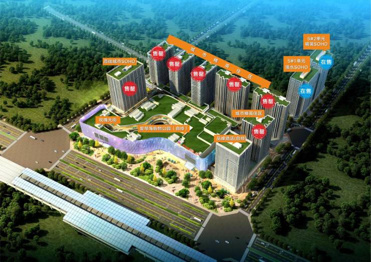 该综合体集大型购物中心(爱琴海购物公园)、星级酒店、城市休闲步行街(玫瑰天街)、商务办公、国际公寓、城市高档住宅(睿峰)等于一体,是方圆5公里内目前最大商业综合体,辐射周边近50个社区50余万人。