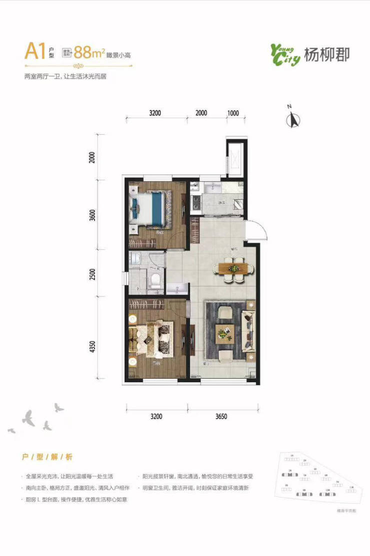 在售产品:88㎡-128㎡ 其中 两室30%,三室70%