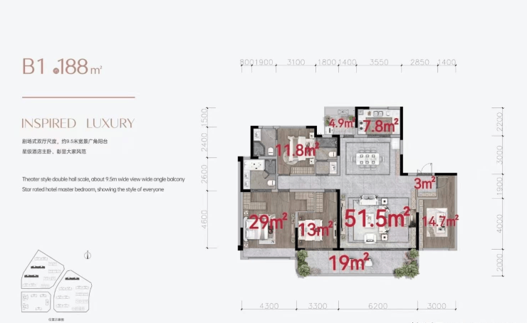 面积:166-188㎡大平层