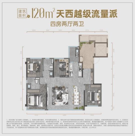 作为全系的入门级改善产品,在120㎡的尺度内实现四房两卫,展现了极高的空间利用率。户型设计精巧,功能齐全,为追求天西板块核心地段与品质生活的成长型家庭,提供了高性价比的入驻机会。