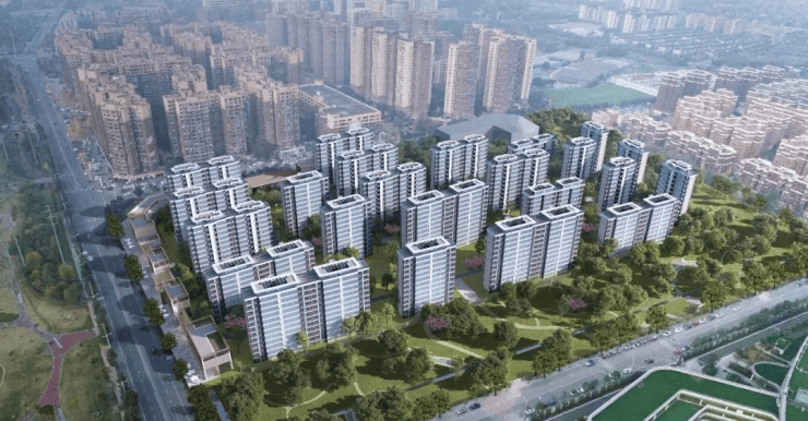 面对占地约98亩、容积率1.8的优质地块,嘉禾兴地产摒弃了货值更高的“高低配”,而是将更多的土地给到院落本身,将整个社区呈现为23栋8-12F的洋房产品+5栋独立商业。