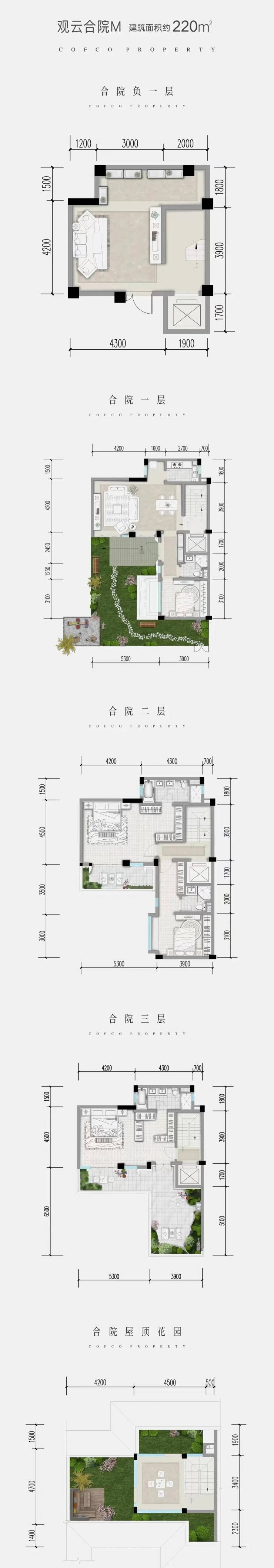 • 合院:220-250㎡(1200-2000万),附赠40-260㎡庭院,260㎡样板间总价1518万