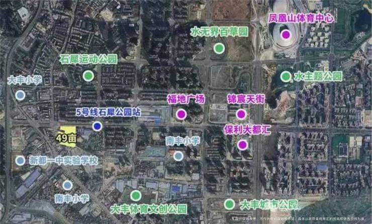 南侧是新都区南丰小学,新都一中大丰分校等众多学校。