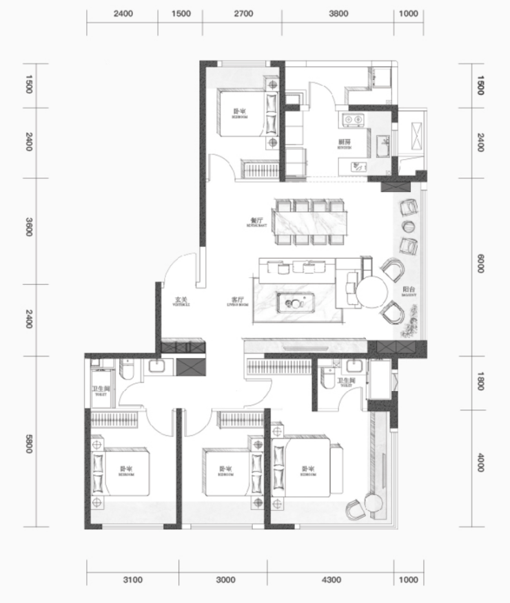 建筑面积约168㎡,四室两厅三卫
