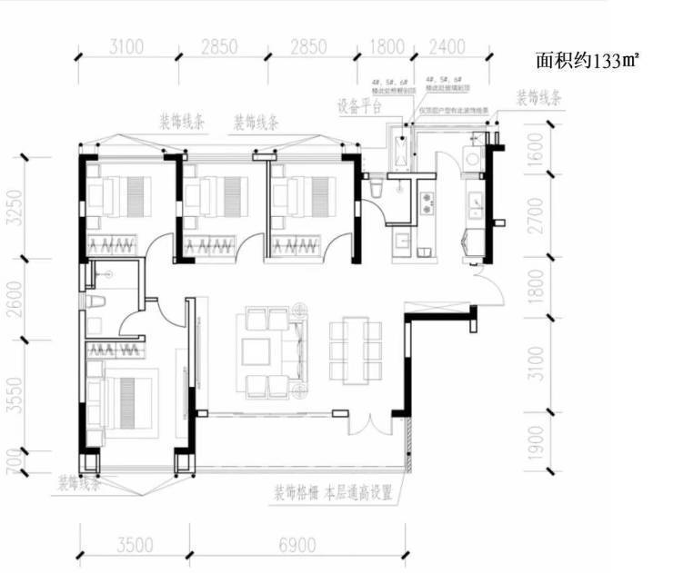总层高:二期12-17F(一楼4.5米架空层无住宅)三期9-17F