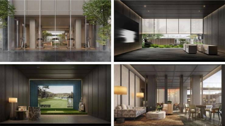 在约1400㎡的空间内,有满足24小时尽情享受社交乐趣与精神价值的全天候多样化运动场,包括约140㎡赏景运动区、约57㎡壁球室、约43㎡室内高尔夫等高端圈层运动方式;也有下楼即享媲美星级酒店接待宴请体验的定制仪式感私享空间,约52㎡私享影院、约230㎡潮流会客厅、约92㎡仪式聚会厅,以及红酒雪茄馆。除了高标准的私享功能空间配置以外,越秀·望悦更是把私享性和视野感巧妙融合在一起,大面积的落地玻璃窗,为城市的烟火繁华中新添演绎隐逸雅奢的生活。