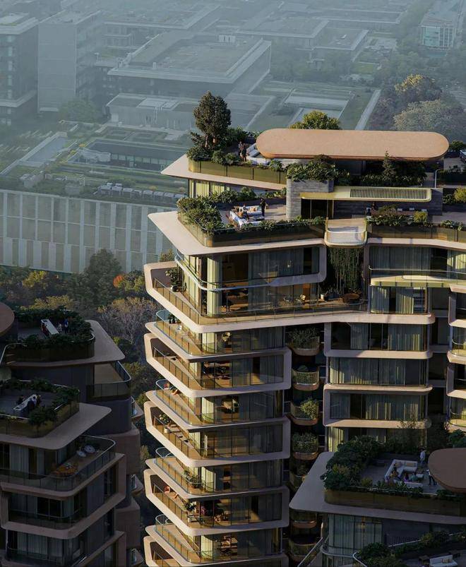 这一设计不仅提升了建筑的稳定性和安全性,更让绿意自架空层向上生长,通过空中花园垂直延伸,营造出一种仿佛置身于森林中的居住体验。