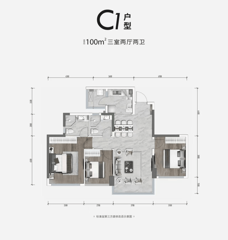 面积:100㎡—123㎡