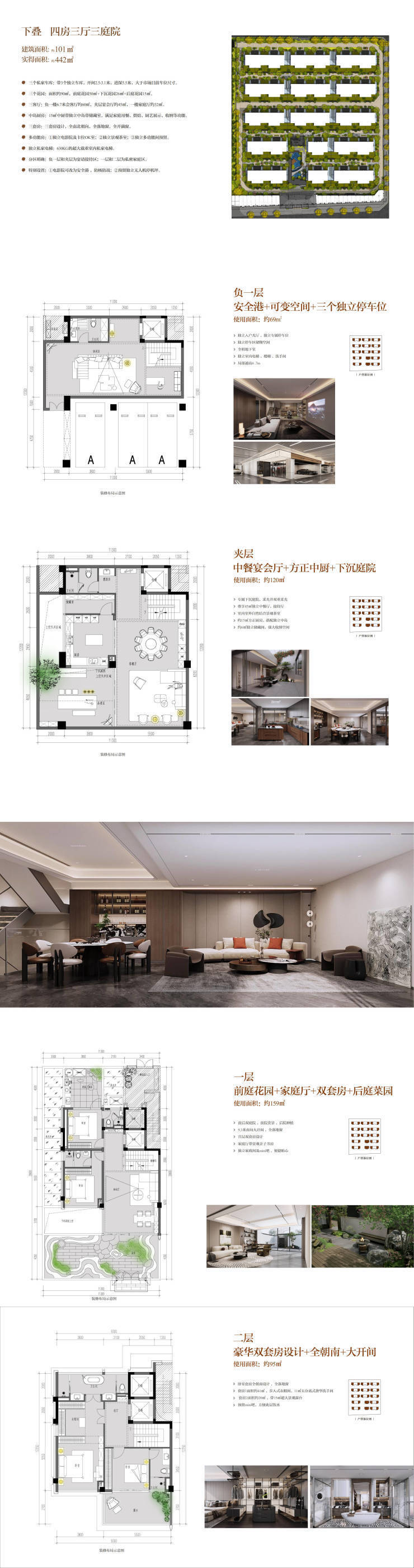 04 主力产品解析 精粹101-120㎡上下叠墅,以四至五房、多重庭院与超400㎡实得面积,承载多代世家生活的全维想象
